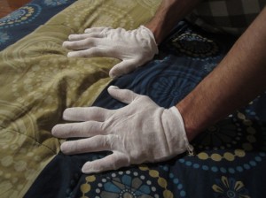 Wearing cotton gloves while you sleep to let the lotion set in | UncommonGoods