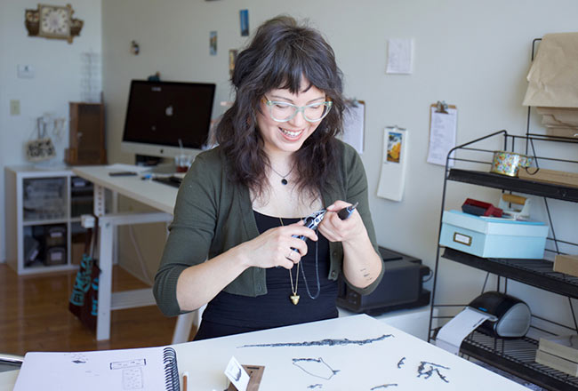 In my work studio, I stopped using any chemicals that were bad for the environment. For metalsmithing you need to use a lot of acids and polishing compounds, so I switched to citric acid and healthier alternatives, which made me feel healthier, and it is better for the environment in general. All the silver is recycled and I have a certificate of authenticity saying that it is all eco-friendly and there is no new mining of silver and gold. I also use all recycled paper and packaging. [My business] is such a big part of my life that it caused me to be intentionally more eco-friendly. This past January marks ten years that I’ve been self-employed, so working 18-hour days and having to throw out packaging and supplies and creating so much waste, I try to offset that as much as possible.