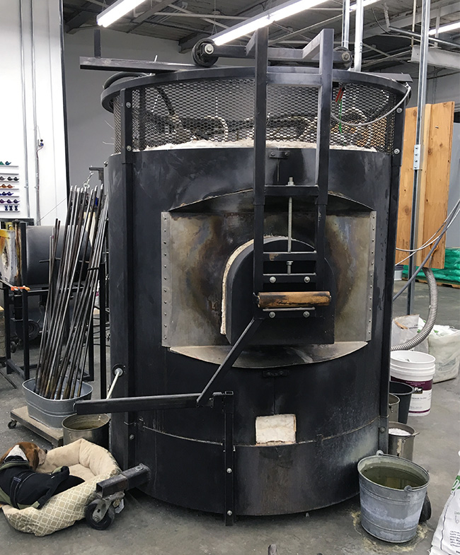 Our furnace was made by Steve Stadelman in Oregon, then shipped to us. Steve wears three hats in life: he is a fireman, a glass blower and a furnace/equipment builder.