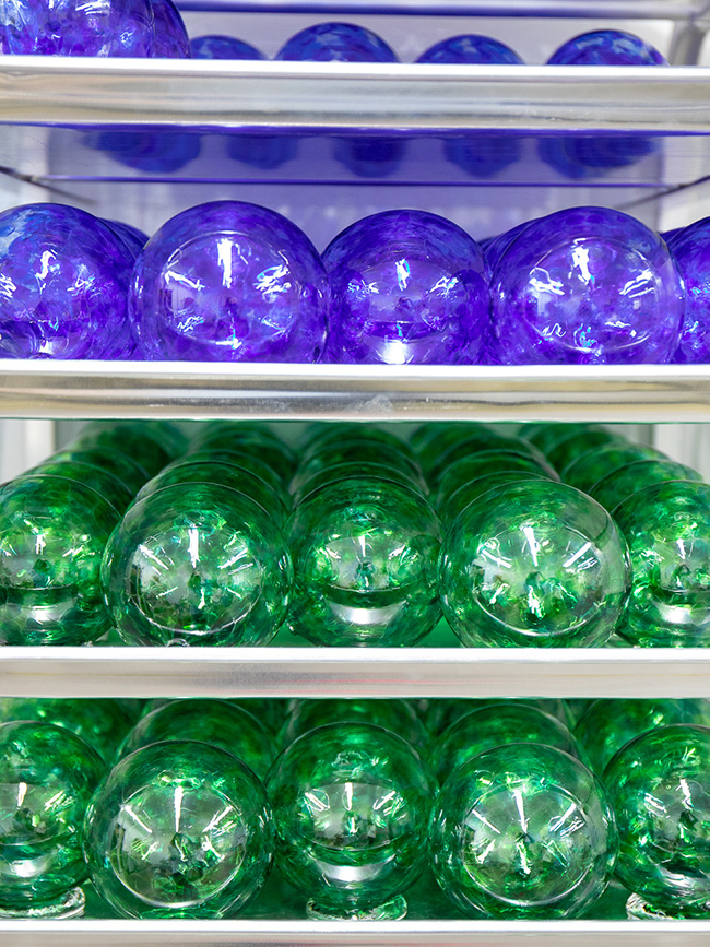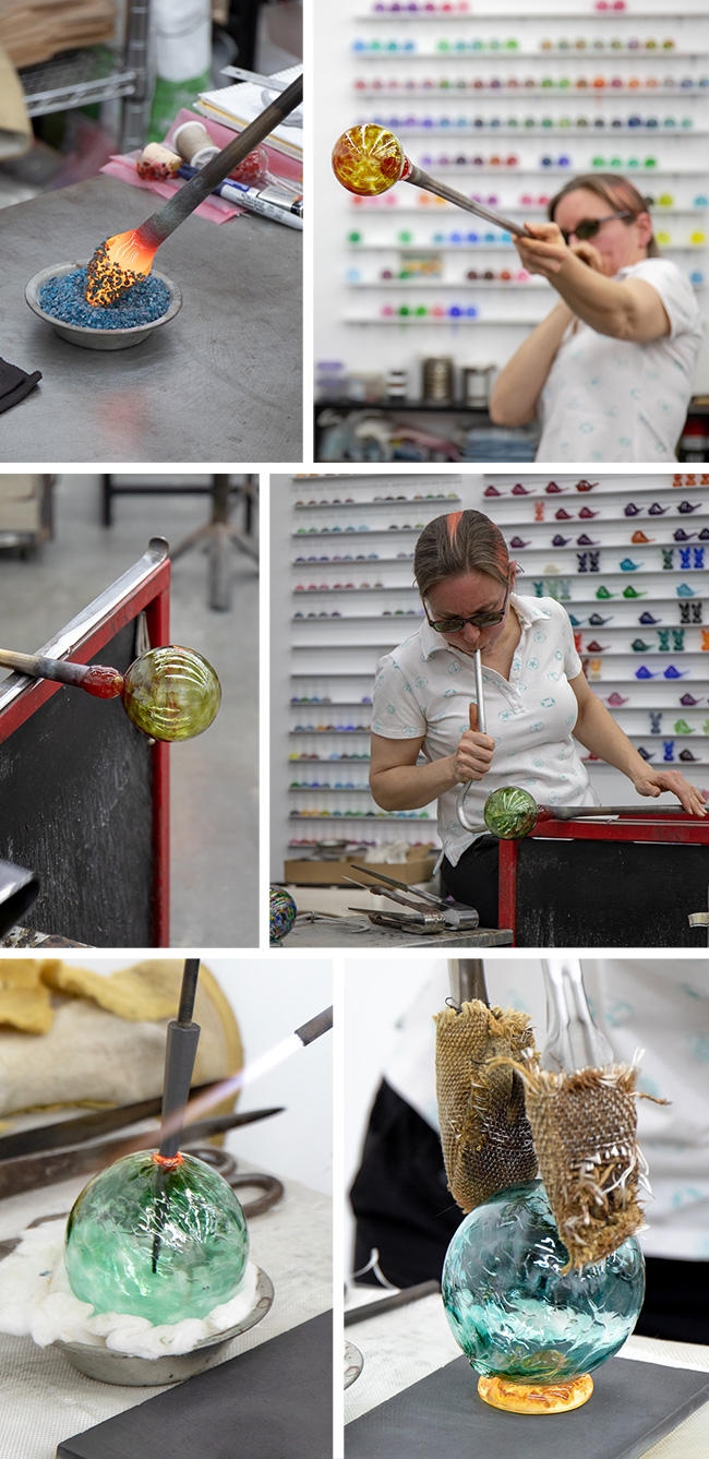 Upon entering Jill Davis’ open, bright studio space two things were apparent. Firstly, I didn’t expect such petite glass beauties to come from such a big personality, and secondly, I wore way too many layers of clothing. We seemed to have a longer, wetter, grayer winter in New England than I remember from past years so visiting a warm and inviting space was ever the more sweeter at the tail end of a dreary season. We visited Jill and her team at Henrietta Glass in their Pawtucket, RI, studio to see where some of UncommonGoods’ most beautiful (and best-selling) glass items, like Jill’s Wishing Balls and Birthstone Wine Bottle Stoppers, are created. Read on to take a look at her process, learn how she collaborates–and celebrates–with her team, and find out where she finds inspiration in and beyond the walls of her creative space.