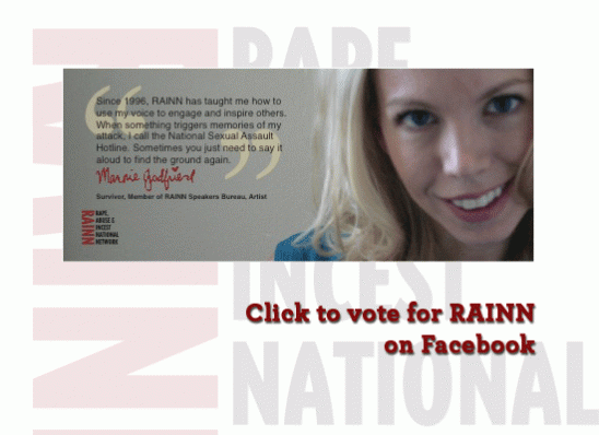 RAINN (The Rape Abuse & Incest National Network) operates the National Sexual Assault Hotline at 1.800.656.HOPE and the National Sexual Assault Online Hotline at rainn.org, and publicizes the hotline’s free, confidential services; educates the public about sexual assault; and leads national efforts to prevent sexual assault, improve services to victims and ensure that rapists are brought to justice.