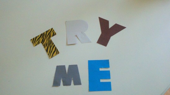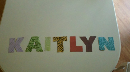 Once we had converted K to Koala, A to to Alligator, and so forth, we gave each animal “eyes” using the included stickers. Kaitlyn was proud to show off her name in animal art!