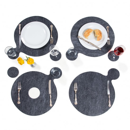 UncommonGoods artists Vicki and Richard Kung are no strangers to innovative design. All of their products are inspired by robots, giving them a sci-fi feel. These Water & Wine Placemats are no exception. Available as a set of four, the PET felt mats are created using 100% post-consumer waste plastic bottles. The circle at the center of each placemat is removable, creating an extra coaster for your wine glass.