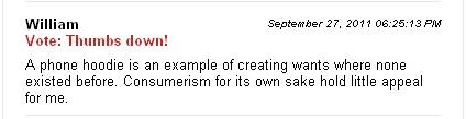 Although William isn’t a fan of this product, we know those who love their electronics do want a way to keep them from being scratched and make them stand out against the other phones and music devices that can all look so familiar. Gift giving is important to our customers, and the Hoodie iPhone Cover is in our voting app because we think it would make a great gift.