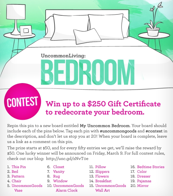 Very fun contest! http://pinterest.com/xcolleenerx/my-uncommon-bedroom/