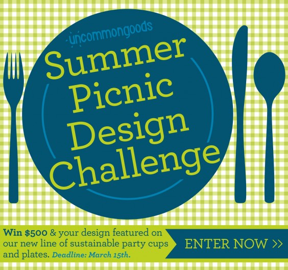 Why are we so summer crazy? We are very excited for our first design challenge of 2012. We have teamed up with SustyParty and Recyclebank to search for the cutest, funnest, most delicious graphic that will be stamped onto sustainable plates and cups to furnish your summertime meals. Designs will be selected by UncommonGoods merchants, our Voting Tool community and an impressive panel of guest judges, including Diana Yen, of The Jewels of NY.