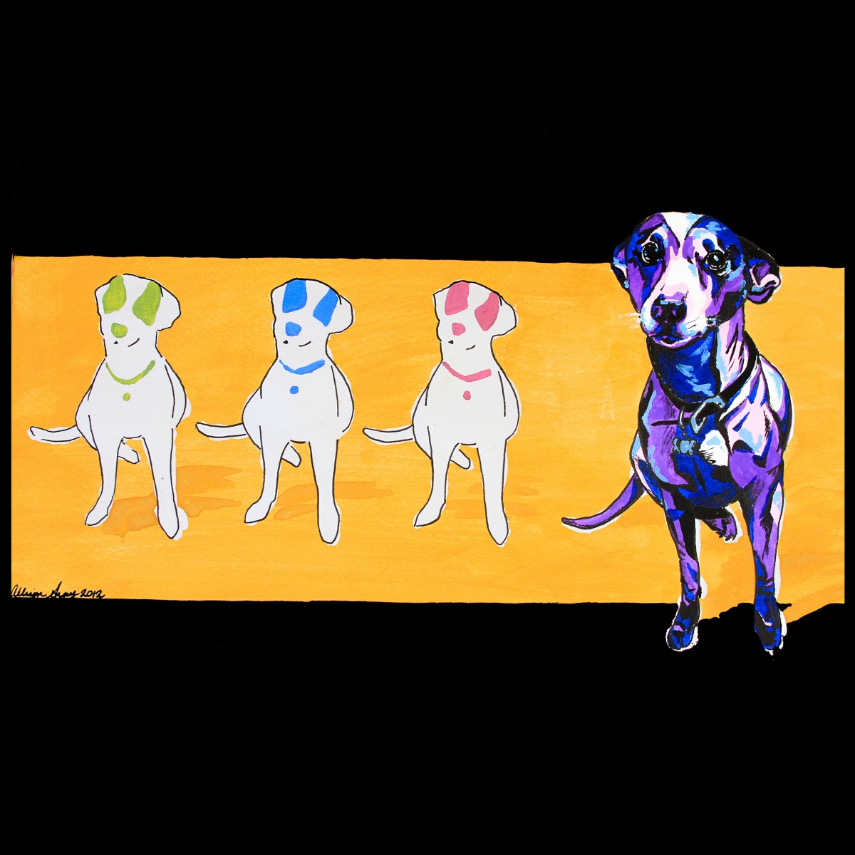 If you follow us closely, most of you know that this summer we proudly launched our Ongoing Art Contest. This means instead of just awarding a winner once a year, we are crowning an independent artist winner and awarding $500 smack-a-roos and a chance to sign a vendor contract to join our UncommonGoods family every single month. The first winner from our Ongoing Art Contest was appointed to Caribbean resident, Allison Gray. We received amazing entries from through out the nation, yet it was Allison’s lovely “Babe” that caught our art judges’ attention. Allison’s eye for detail, use of mixed media, and sweet, creative design of her very own pup landed her into the winning spot. In her interview, Allison mentions that “it wasn’t until I began expanding my media usage that I started veering away from strict realism and started redefining my limitations.” We’re more than ecstatic that Allison experimented out of her comfort zone, because as a result “Babe” was created and now will be officially a part of our artist gallery!