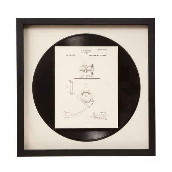 We dig that. The team didn’t want to mess with perfection, so the artworks in our new collection consist of un-altered reproductions of the original patent applications, printed on 100% archival enhanced matte paper. Each goes a thought-provoking (and fun) step further by subtly incorporating functionality and form, to illustrate how these inventions have evolved. The Phonograph, for example, incorporates a vintage vinyl LP, and the Light Bulb is illuminated by an LED.
