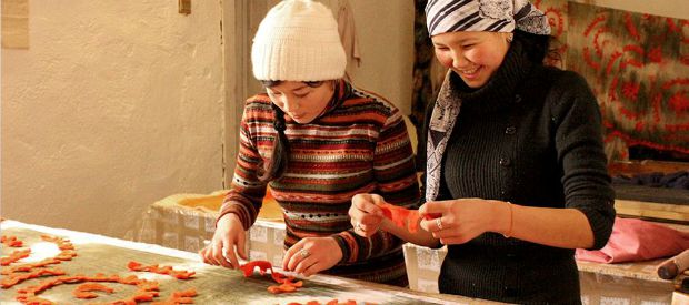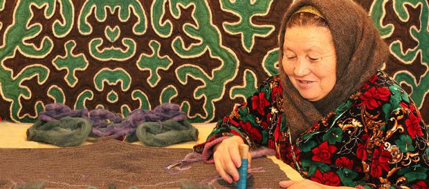 Kork artisans working on Kyrgyz designs