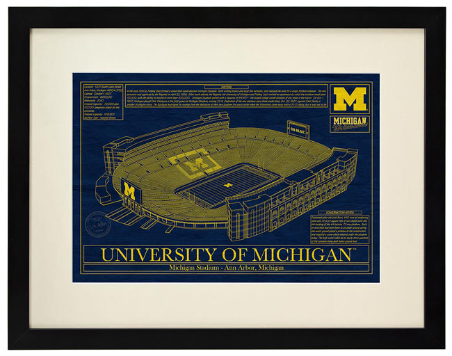 A great gift for anyone who can still hum their school’s fight song, these collegiate-colored stadium blueprints evoke their alma mater’s big wins. | College Football Stadium Blueprint
