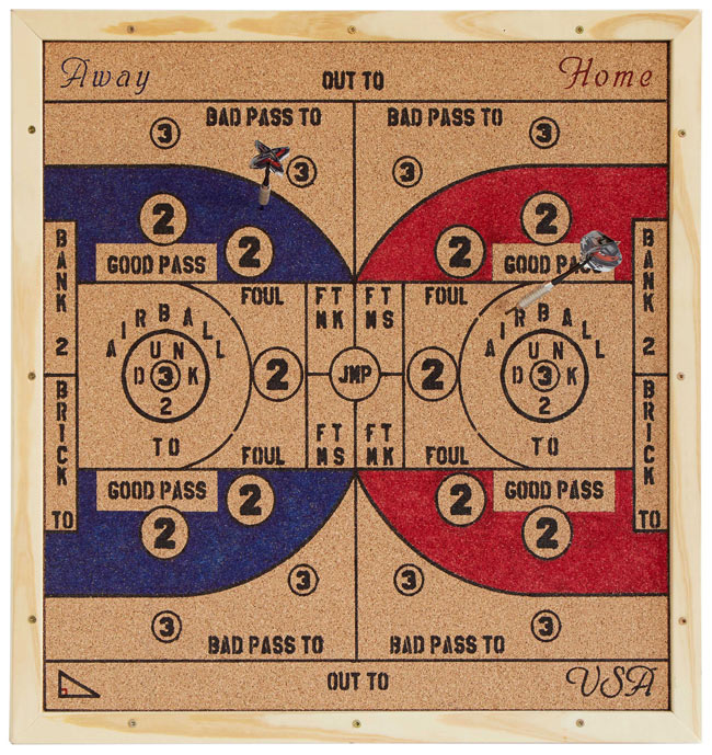 Combining the thrill of sitting courtside with the casual fun of a bar classic, this slam-dunk dartboard will hit the bull’s eye with any basketball buff. | Basketball Darts