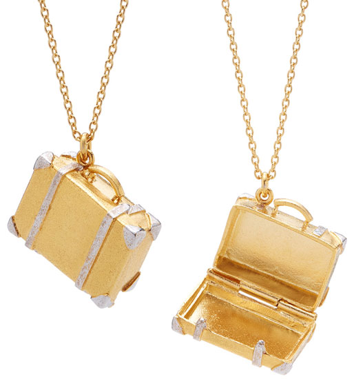 A frequent traveler will instantly fall for the vintage charm of this pendant, which opens and closes to hold small souvenirs or other mini trinkets. | Vintage Suitcase Locket Necklace