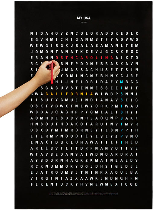 With this interactive poster, they can display all of their past travel destinations and remember the places they’ve still yet to roam. | USA Word Search Travel Poster