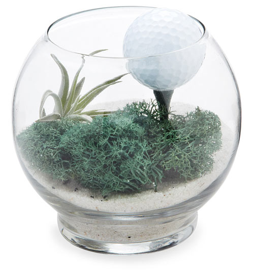 Lastly, this low-maintenance terrarium is ideal for any golf enthusiast looking to spruce up his subterranean pad, requiring only a once weekly spray of mist. | Tee Time Terrarium