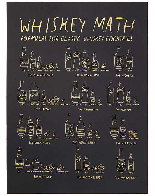 At last, a cocktail resource for the visual learner—not to mention a necessary addition to any armchair-dwelling whiskey lover’s walls. | Whiskey Math Cocktail Recipe Screen Print