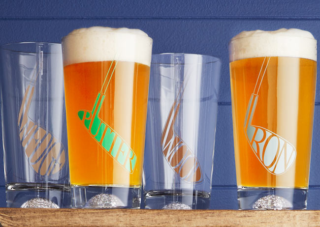 Bring a bit of the green into his wood-paneled lair with this bold quartet of golf-themed pint glasses, each featuring a classic club design. | Set of Fore! Golf Glasses
