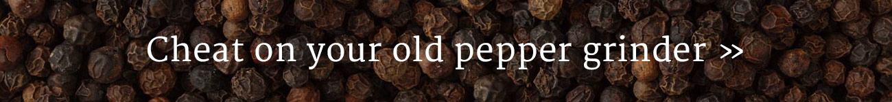 I read about pepper (piper nigrum, not chili peppers, an entirely different plant) and how it sparked the spice trade, with its history of international intrigue, daring exploration, lust for power, and fierce greed. I researched the types of pepper that come with the fancy mill, and dreamed of the exotic, heady aromas and tastes that could be mine with a simple twist of the wrist.
