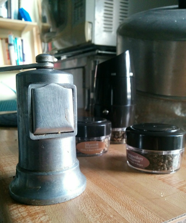 My faithful but limited old pepper mill (L), with the new model waiting in the wings (R).
