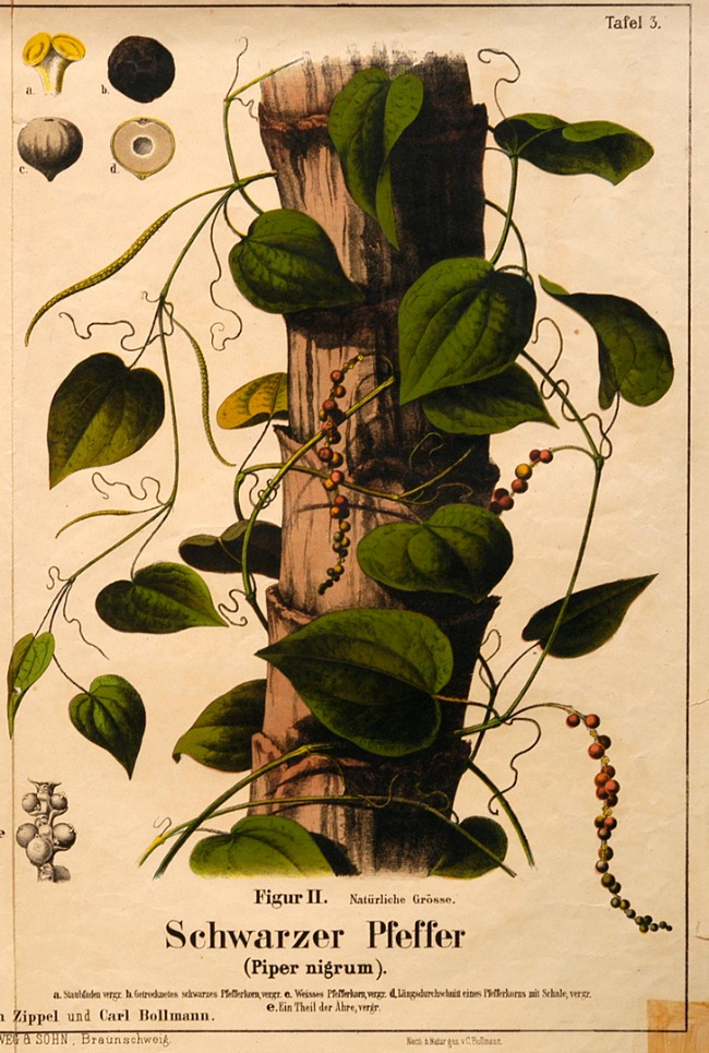 1876 Dutch illustration of pepper (piper nigrum) vine. (Public domain)
