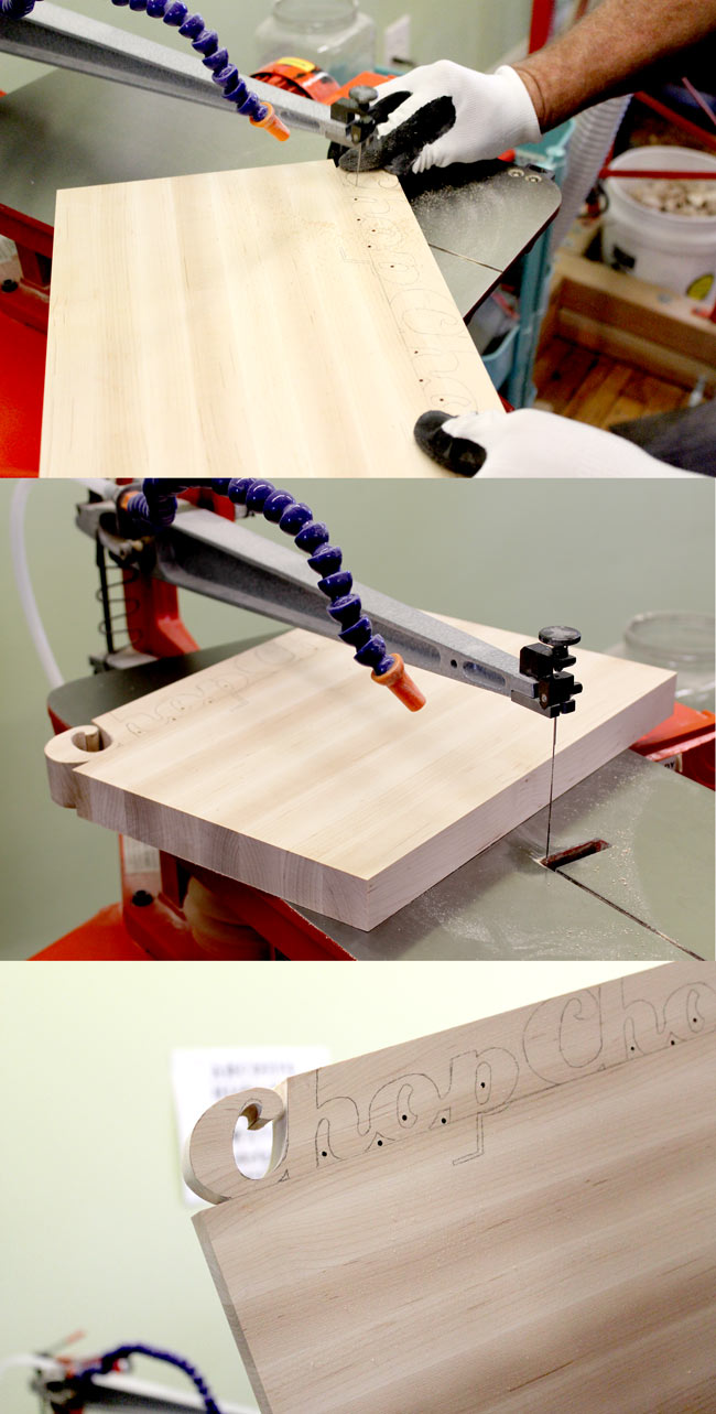 Kim’s first cutting board with words, which she cut herself for a college project.