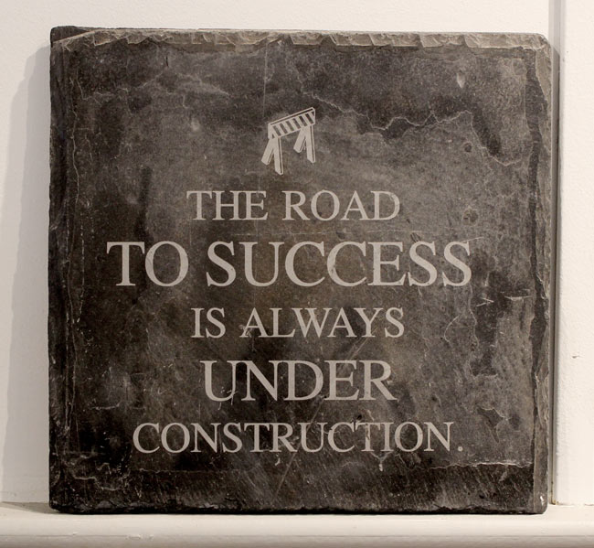M: I have a roof slate that I laser engraved with: “The road to success is ALWAYS under construction.” So true.