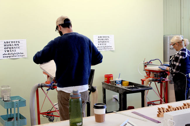 Paul Niziolek and Dana Goldstein crafting Words with Boards cutting boards