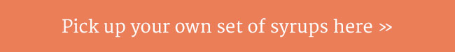 Barb: We were [already] making some syrups to go in the popsicles, to get some of the flavors, like basil and rosemary, into them without actually having bits and pieces of the herbs in there. So we started changing all those flavors and adding them into the syrups as tests. That kind of happened by chance. We created about fifteen flavors and invited about fifty women from our kids’ classes—the moms that we’re friends with—[to] a big party and put the bottles out and just let them go to town creating different drinks with them.