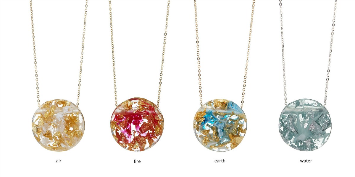 Your zodiac maniac will dig a handmade eco-resin necklace that corresponds to their element: air, earth, fire, or water.