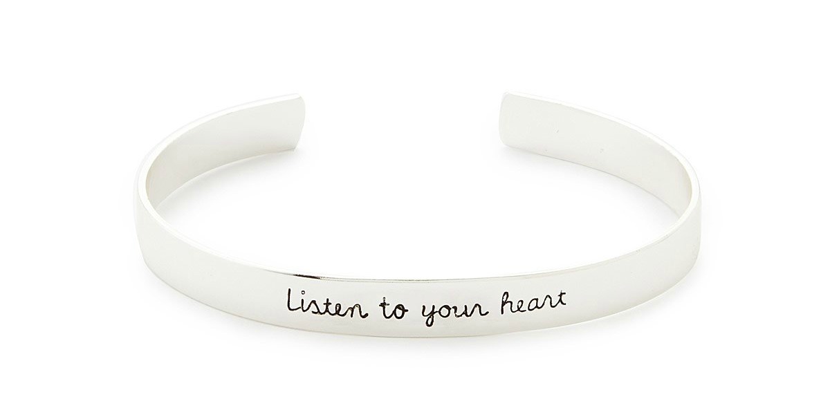 Dreamers unite: Go ahead and remind them to follow their passions with a simple, inspirational silver-plated cuff.