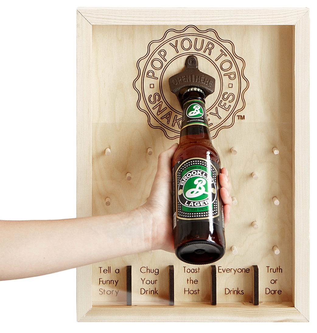 Fusing fun and function, this mountable bottle opener doubles as a drinking game perfect for decking the halls walls of one’s man cave.