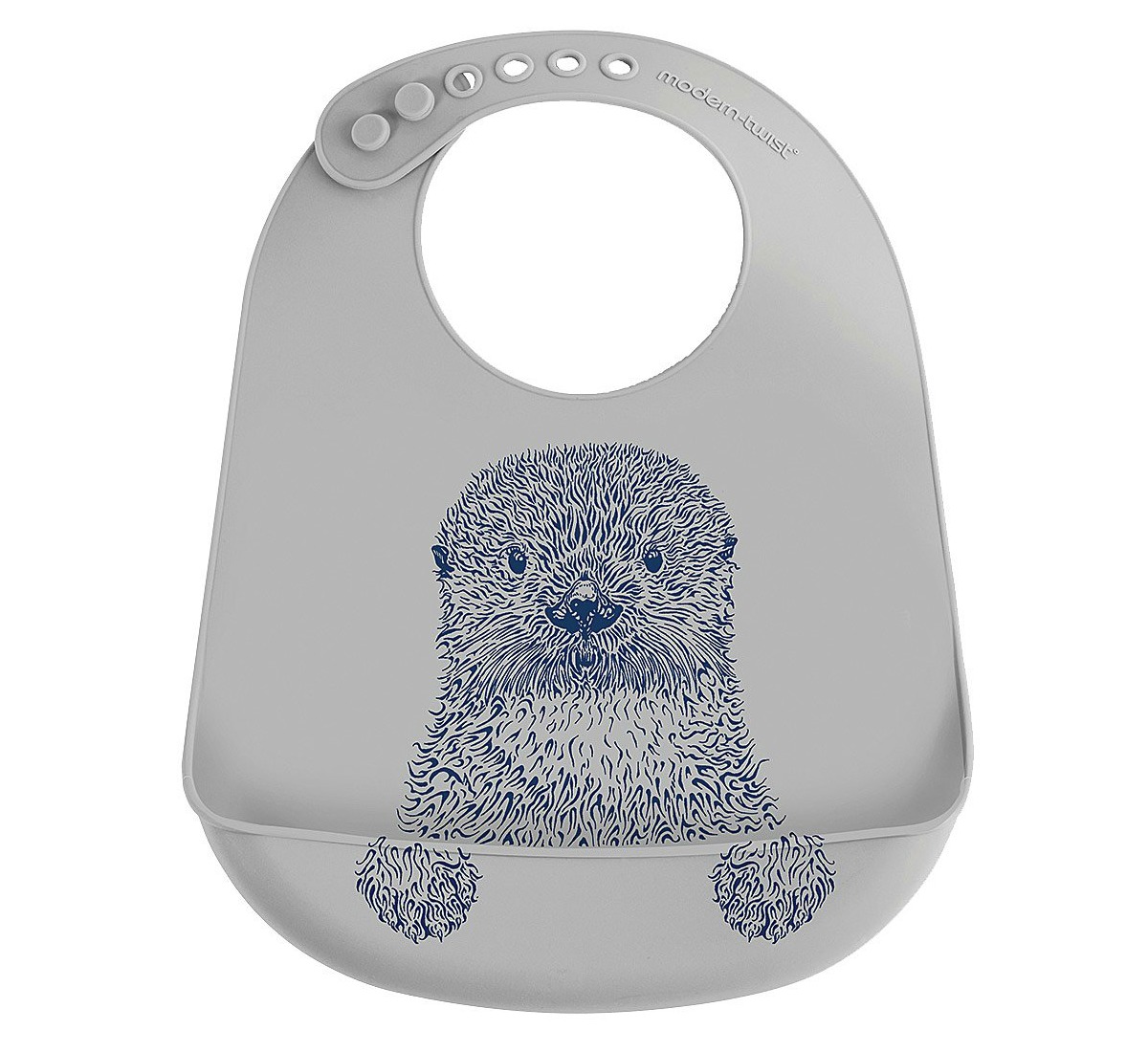 The furry paws peeking over the lip of this bib are just begging for baby’s dropped crumbs. Luckily, the bucket catches fallen morsels and the bib’s silicone material wipes clean with ease, so it’s OK if it seems like your kiddo is more concerned about feeding the otter than making a personal spoon-to-mouth connection.