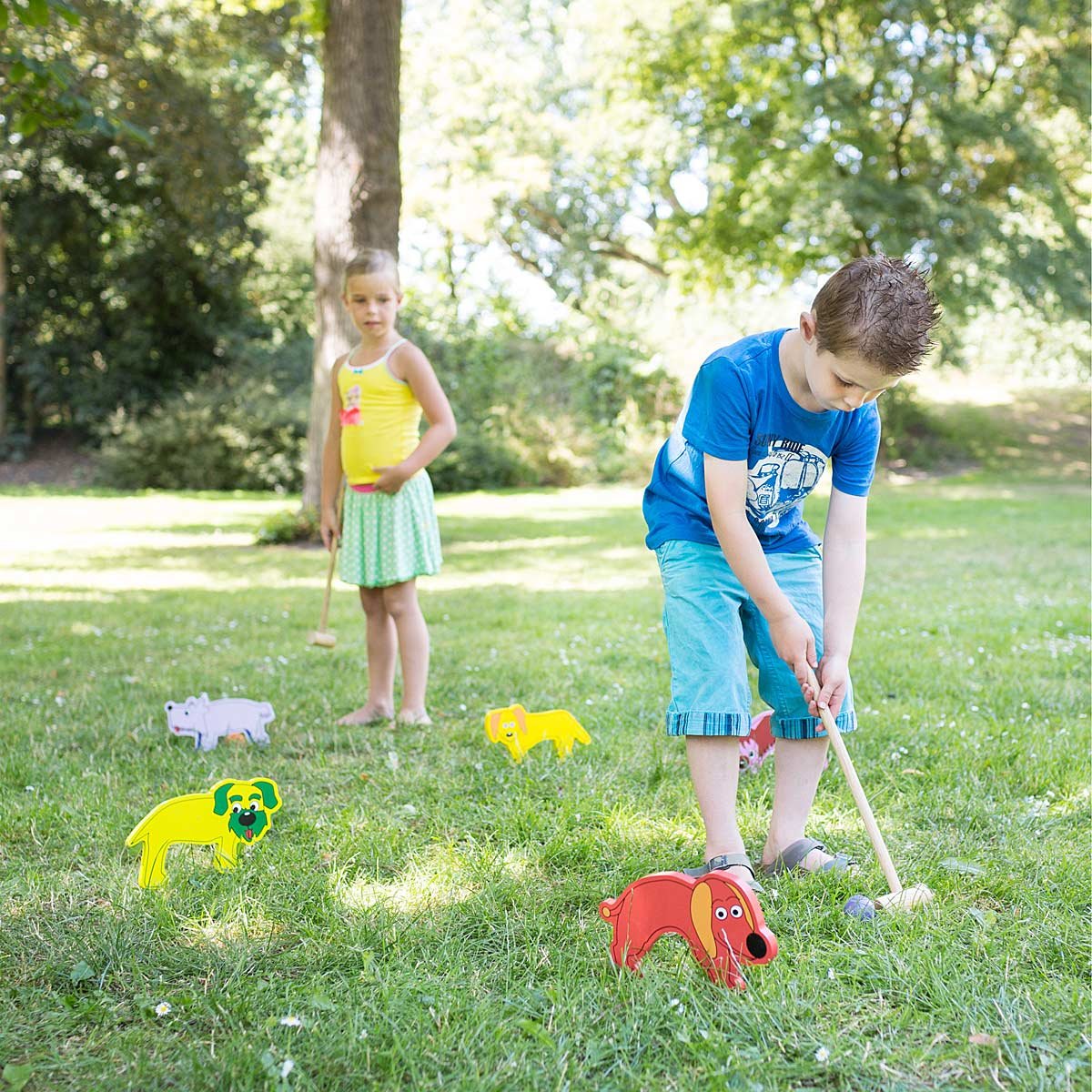 This croquet set is just the right size for kids–and the colorful pooches on the hoops make it extra cute.
