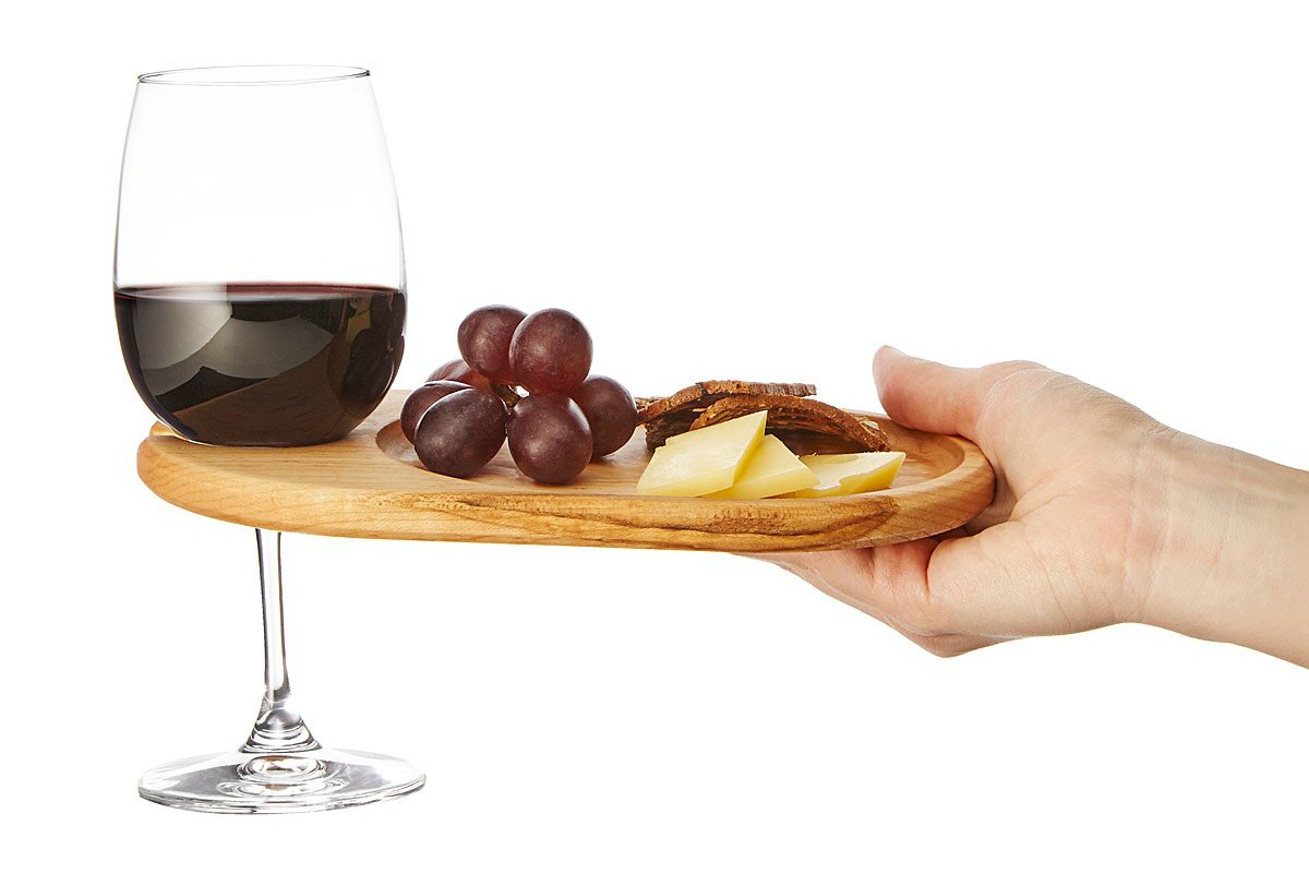 Rest easy, gesticulators: This tray keeps your vino secure and allows one hand to wave freely as you mingle.