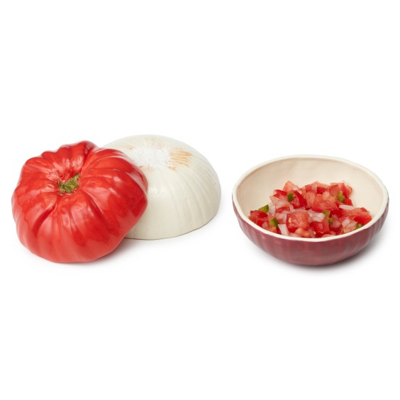 Artist Melanie Mckenney creates earthenware bowls that bear a stunning resemblance to fruit and vegetables. Her bowls are designed to look like the ingredients in a fresh salsa with realistic colors and the textures and details on her newer Grapefruit and Canteloupe bowls will fool the eye into thinking they are the real thing.