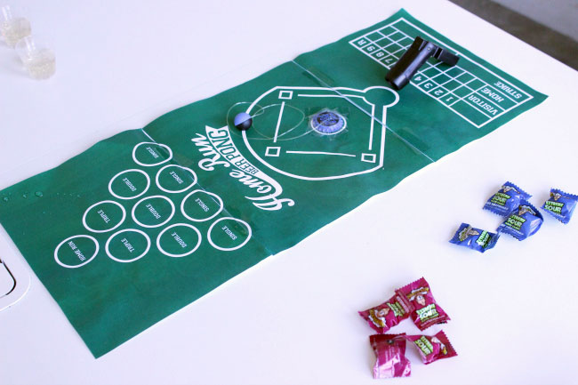Allow me to set the scene for you. It all went down in Conference Room A-2 – the table free of it’s usual keyboards and mouse pads, instead replaced with a mini paper baseball diamond (the real game has a board, not just a sheet of paper – remember we were product testing). Our single can of Canada Dry was cracked and ready, and our two opposing teams were eager to show off their baseball playing, soda slugging skills. Another disclaimer: the real game is meant to be played with beer, obviously, but we were playing at 11 AM on a Thursday and we only had the conference room booked for an hour, so we kept it low-key. But, you’re free to chug ginger ale instead if that’s what you’re into.