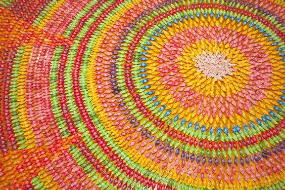 Most candy looks like abstract art to begin with, so it’s a natural subject and inspiration for artists, photographers, and designers. Look at this photo of Airheads Extreme Sweet Sour Belts by Steven Depolo next to Pop artist Gene Davis’s 1964 painting, “Sour Ball Beat” (above).