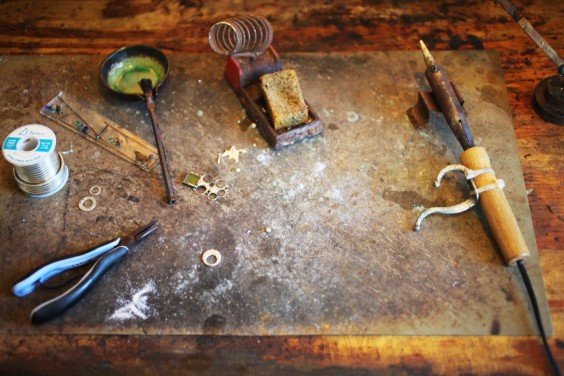 I work out of Brooklyn Metal Works, a wonderful, collaborative creative space for jewelers and metal smiths. The owners, Erin Daley and Brian Weissman, are building a fantastic community there. They have regular exhibits, artists’ lectures, and classes. My personal jewelry education continues to grow there. I love being around other jewelers and artists because we bounce ideas off of one another, brainstorm about construction, share new tricks and techniques we’ve learned, and we all respect each other. And there’s always great music in the background!