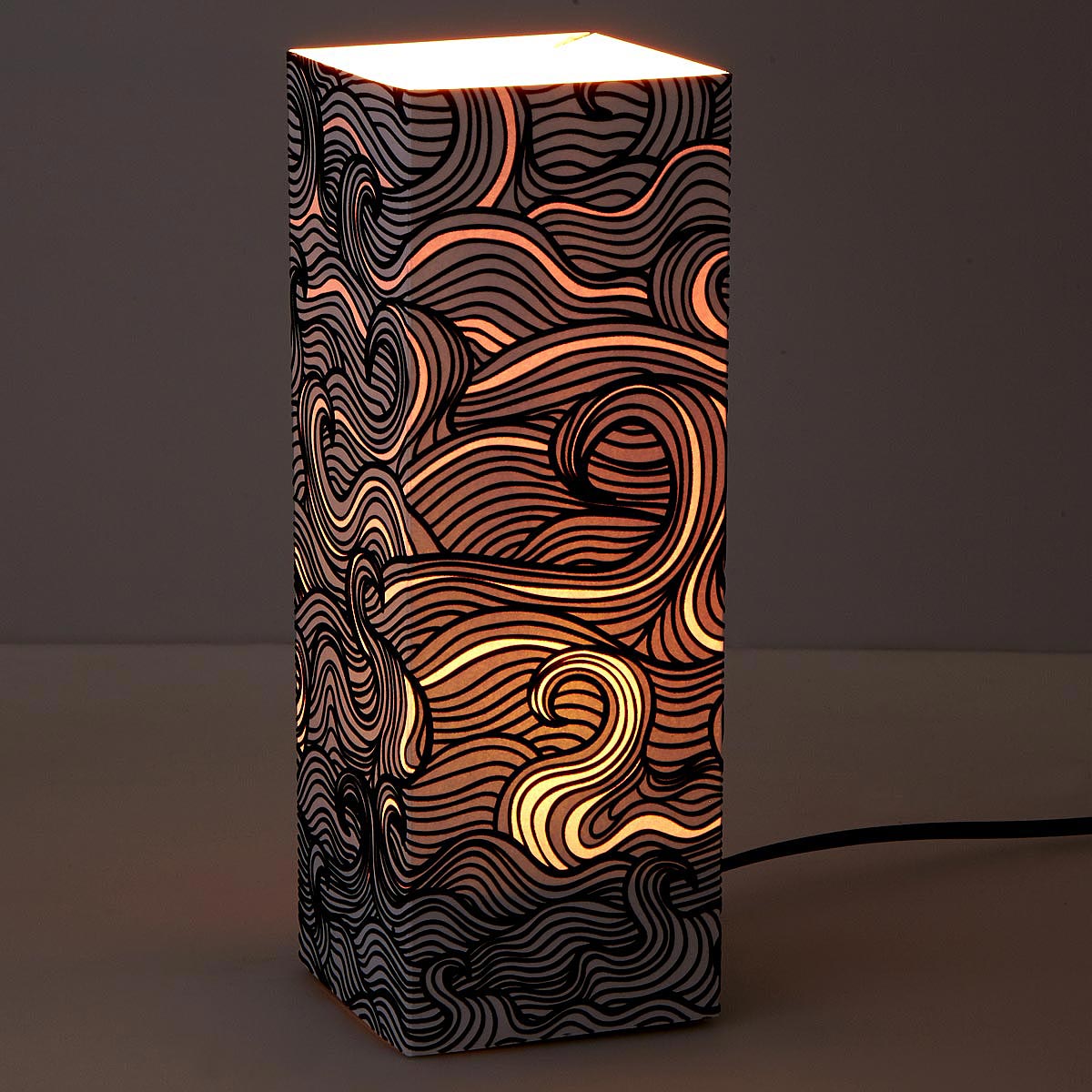 A few steps away from what Luke calls “the whiskey lounge,” lamps were placed in sections that were in different stages of production: wooden block bases being cut, bases ready-to-be stained, and tiny sculptures about to get polished. “How did you come up with this hand-touch concept?” I asked as I placed my index finger on and off the Mr. Owl Touch Lamp, watching the light bulb flicker. “It’s honestly not a brand new concept, it’s the design that makes it different.”