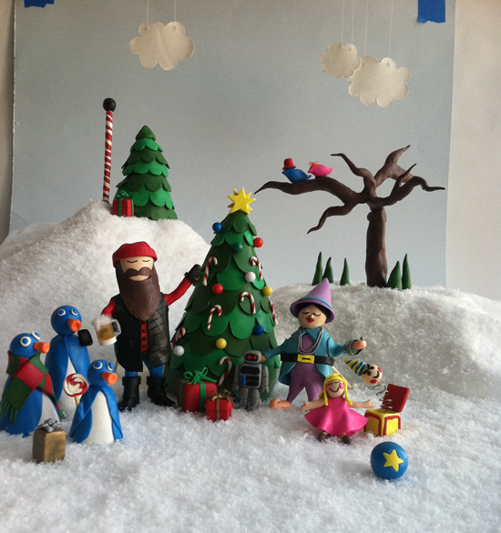 “We turned our conference table into to a craft station and had piles of clay and tools to work with”, says Gaby Germaine, Associate Creative Director. “We had photographers, designers and copywriters all making different elements. Then once all the items were constructed we created the snowy home for everyone.”