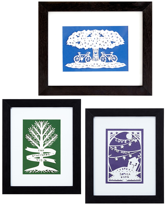 Annie isn’t totally new to the Uncommon family–we’ve had her Love You to the Moon Personalized Papercut and Love Birds Personalized Papercut in stock for a bit, but since she has a brand new Personalized Family Papercut on offer, we figured it’d be a great time to introduce her. Read on to hear from Annie about how a hobby making presents for family and friends turned into a fun, full-time gig.