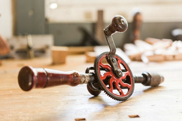 Tristan’s antique hand drill | photo by Stuart Mullenberg